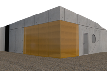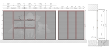 Um die Lichtdurchlässigkeit weiterhin zu gewähren wurden verschiedene Materialstudien durchgeführt. Um den Pavillon mit dem Gebirgsverein zu identifizieren, wird die Fassade mit einem gelasertem Blech in dem das Gebirgsvereinslogo ausgestattet.