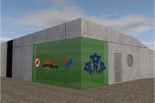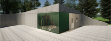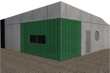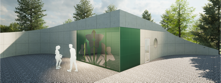 Das Konzept für den Pavillon war eine kletterbare Glaswand. Da die Glaswand immer wieder beschädigt wurde, wurde eine alternative Lösung gesucht.